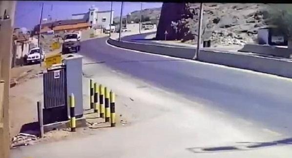 شاهد .. انقلاب مروع لشاحنة بعد اصطدامها برصيف طريق سريع في نجران