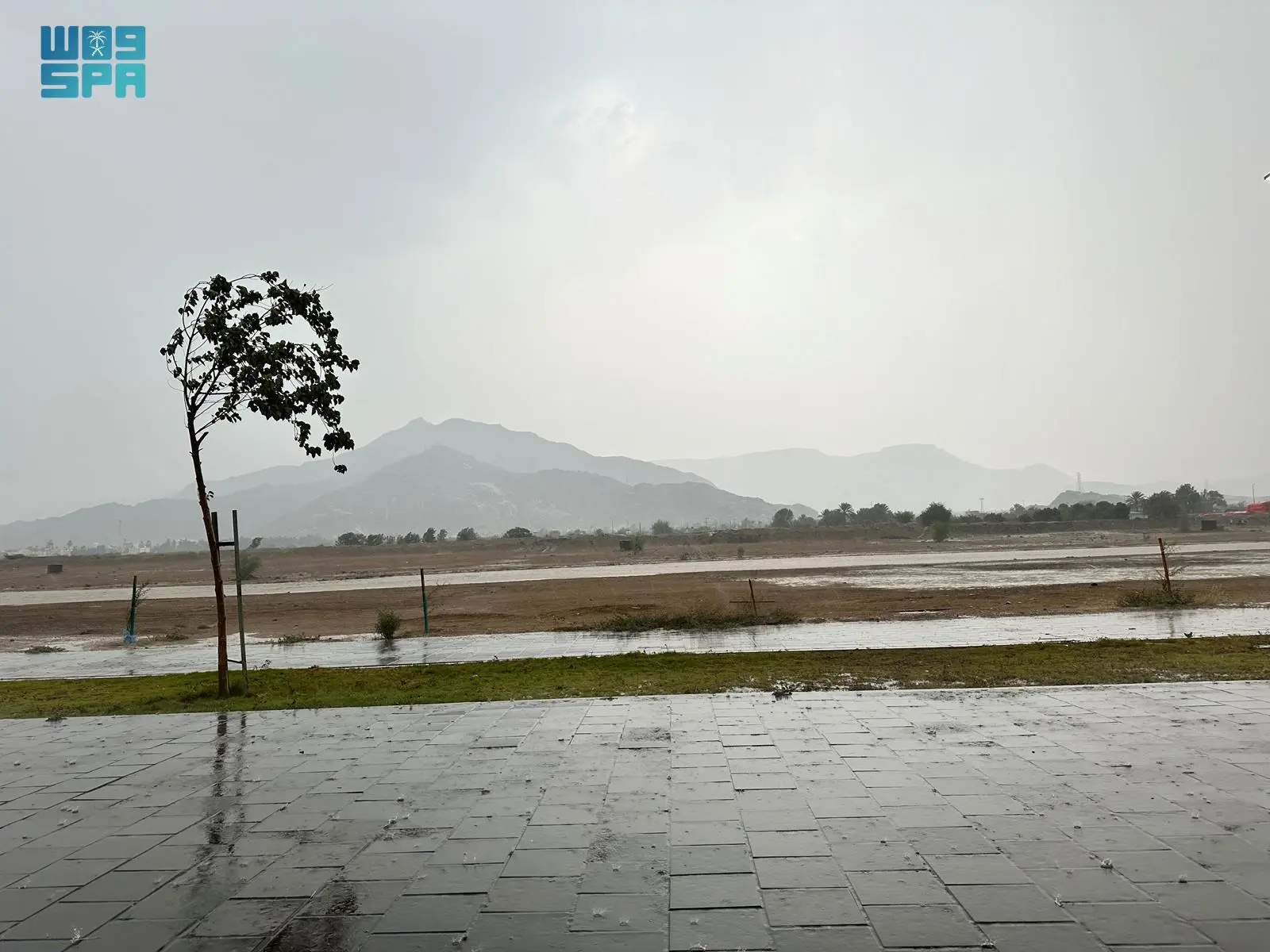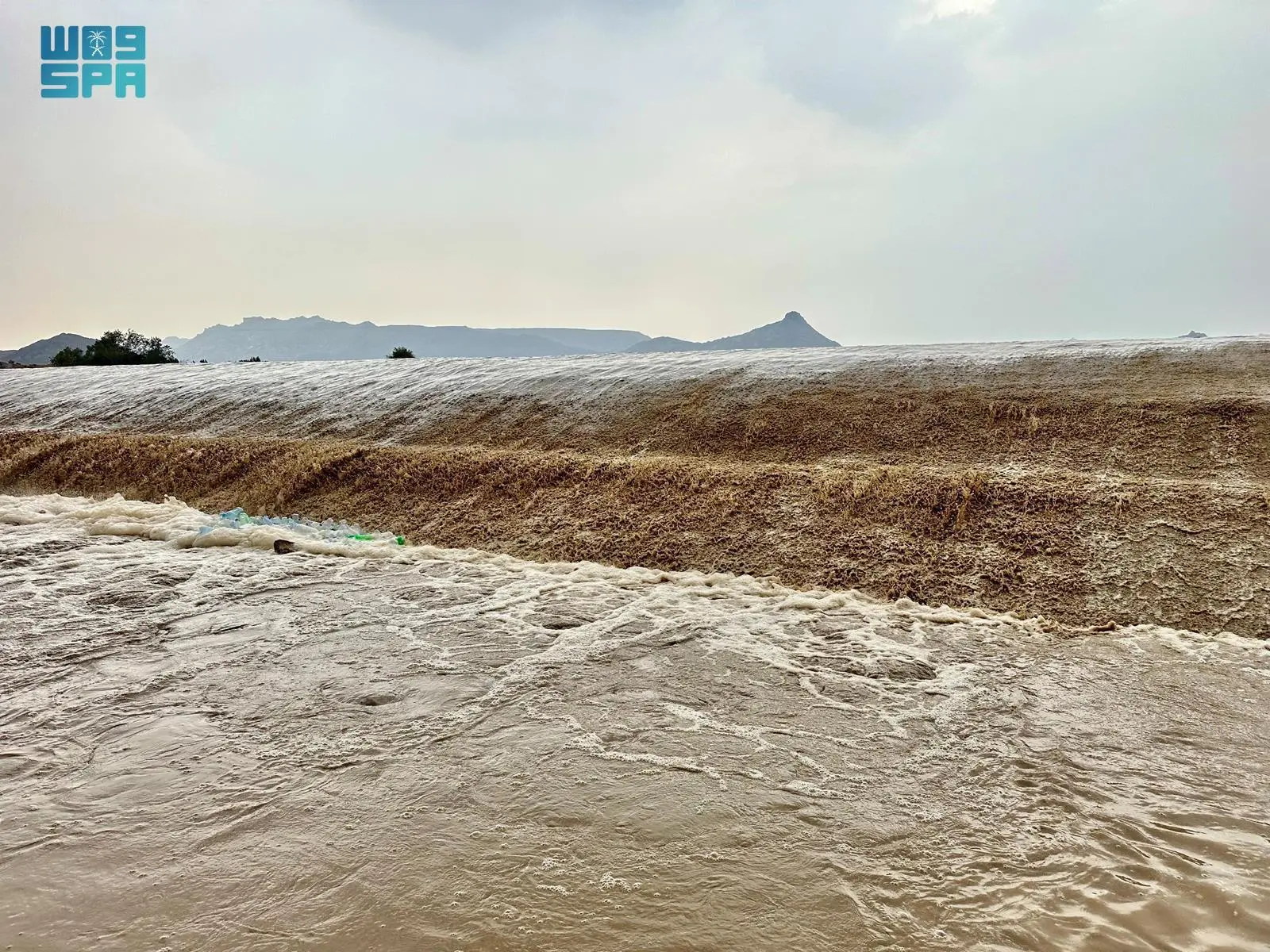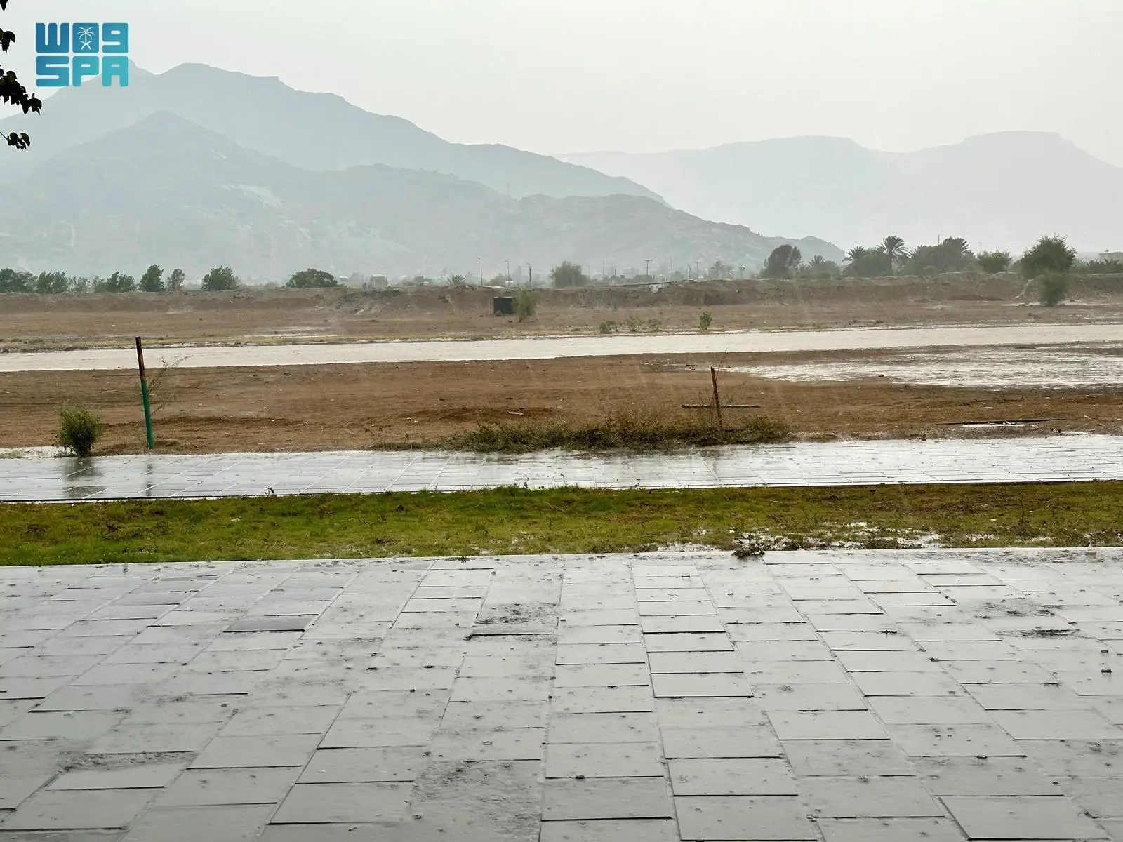 الأجواء الجميلة الممطرة تجذب المتنزهين إلى ضفاف وادي نجران