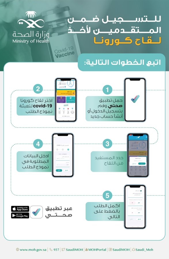 5 خطوات للتسجيل في تطبيق صحتي للحصول على لقاح كورونا