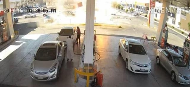 وأظهر الفيديو ، لحظة انفجار خزان الوقود ، بقوة وانهيار الأرض بينما كانت عدد من المركبات متوقفة في المحطة .