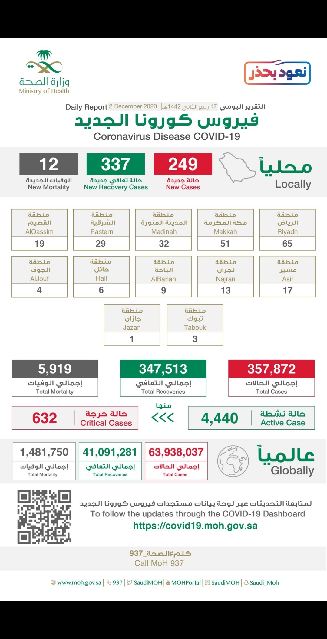 الصحة تعلن تسجيل 249 إصابة جديدة بفيروس كورونا، 337 حالة تعافي خلال ال 24 ساعة الماضية، و 5,919 إجمالي الوفيات.