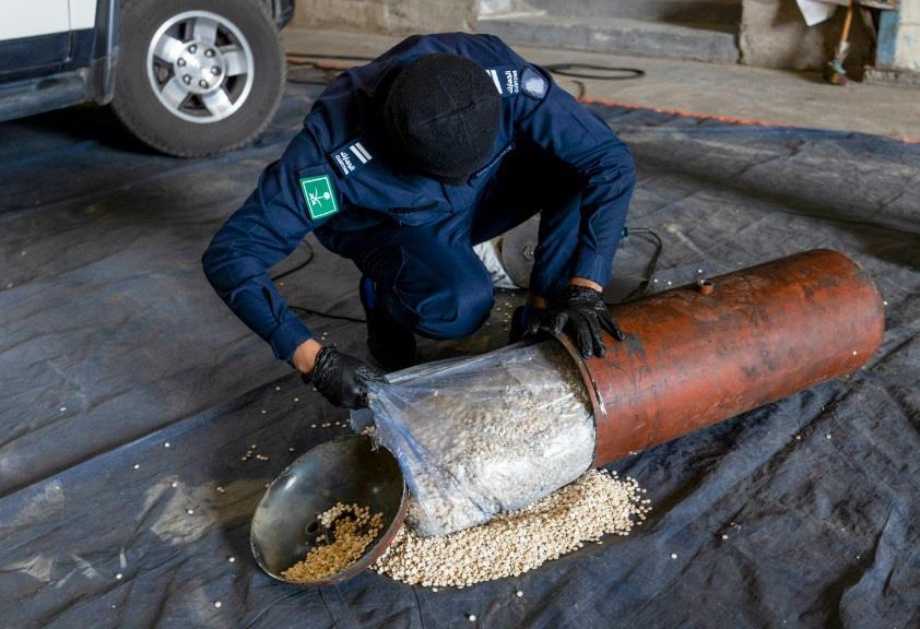 وأكدت أنه تم القبض على مستقبلي هذه المواد المخدرة، وعددهم 3 أشخاص، وذلك بالتنسيق مع المديرية العامة لمكافحة المخدرات، مؤكدة أنها ماضية في إحكام الرقابة الجمركية على واردات وصادرات المملكة، وتقف بالمرصاد أمام محاولات أرباب التهريب.