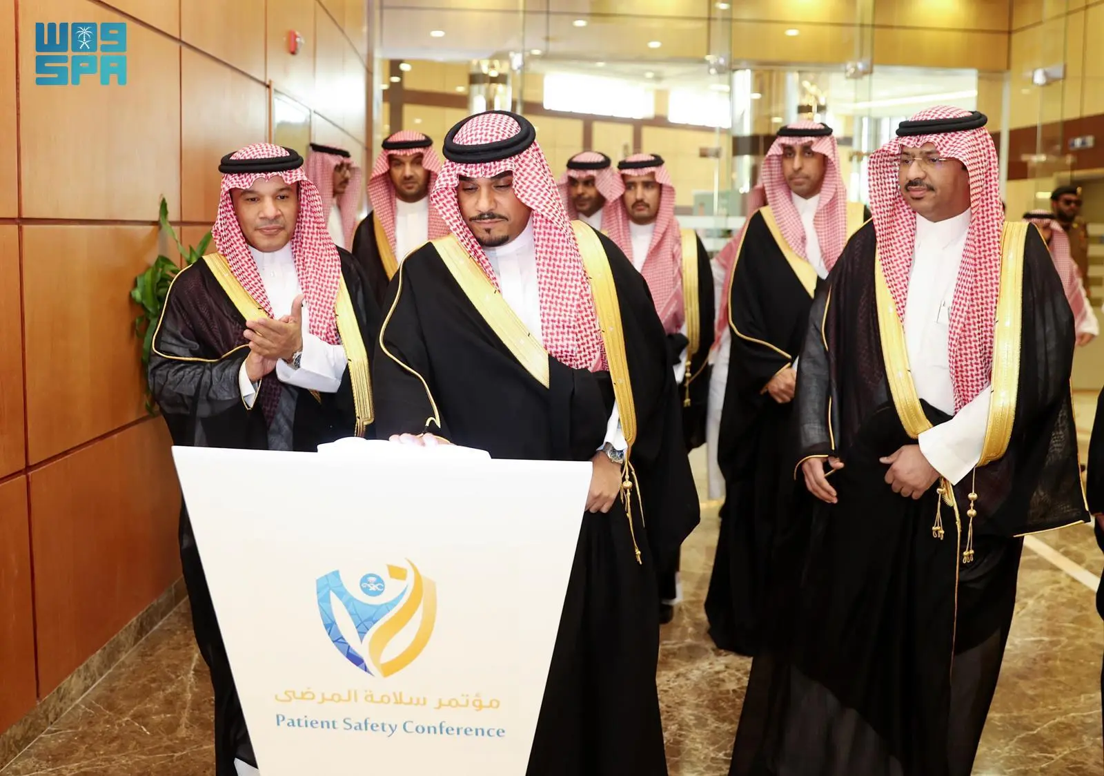 وفور وصول سموه دشّن فعاليات مؤتمر سلامة المرضى، والهوية البصرية لحملة “التبكيرة خيرة” التي تنفذها جمعية رعاية مرضى السرطان بالمنطقة للكشف عن سرطان الثدي، كما اطلع على ما يحتويه المعرض المصاحب من أركان صحية وخدمات طبية.