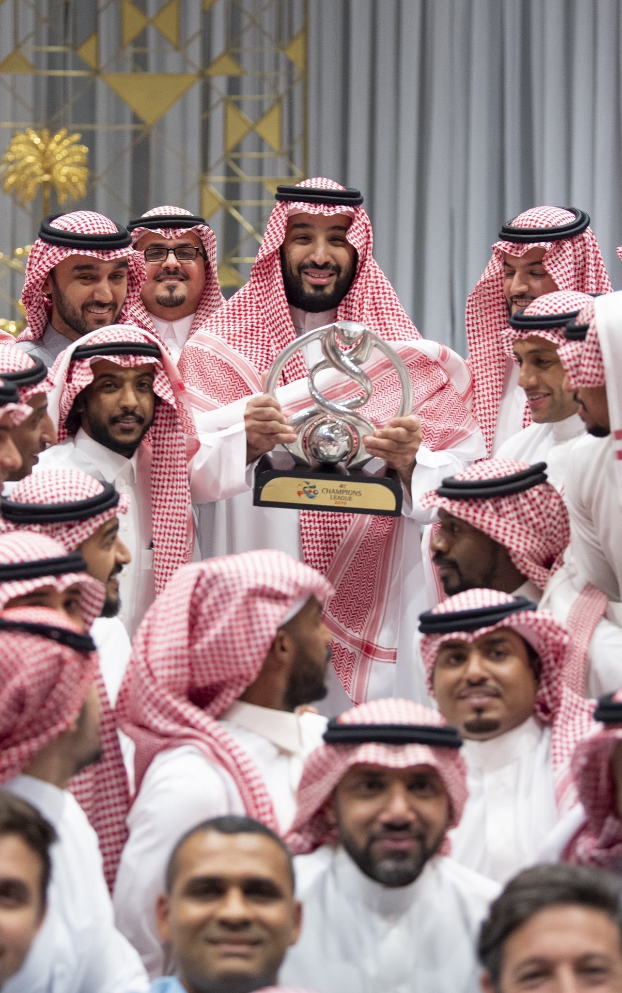 استقبل صاحب السمو الملكي الأمير محمد بن سلمان بن عبدالعزيز ولي العهد نائب رئيس مجلس الوزراء وزير الدفاع اليوم، صاحب السمو الملكي الأمير عبدالعزيز بن تركي الفيصل رئيس مجلس إدارة الهيئة العامة للرياضة، ووكلاء الهيئة ورئيس الاتحاد السعودي لكرة القدم، ورئيس وأعضاء مجلس إدارة نادي الهلال والجهازين الفني والإداري ولاعبي الفريق لكرة القدم بمناسبة تحقيقهم بطولة دوري أبطال آسيا، والتأهل لكأس العالم القادمة للأندية.