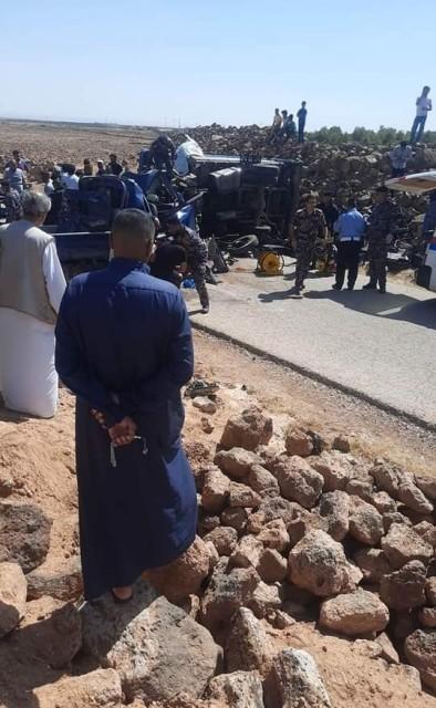 توفي 8 أشخاص وأصيب 13 آخرون، اليوم الثلاثاء، نتيجة تصادم مركبتين بمنطقة البادية الشمالية في محافظة المفرق الأردنية.