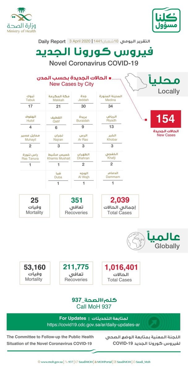 وأشار إلى أن 34 من الحالات الجديدة سجلت في المدينة المنورة، و30 حالة في جدة، و21 حالة في مكة، وتبوك 17 حالة، و13 حالة في الرياض، و9 في بريدة، و6 في القطيف، بالإضافة إلى عدد من الحالات في مدن أخرى.