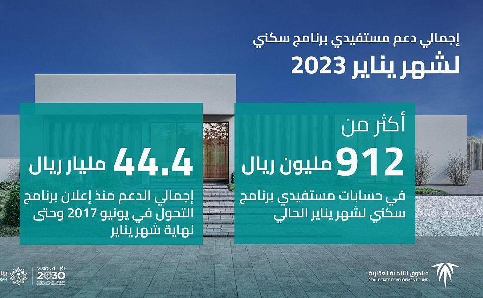الصندوق العقاري يودع أكثر من 912 مليون ريال في حسابات مستفيدي “سكني” لشهر يناير
