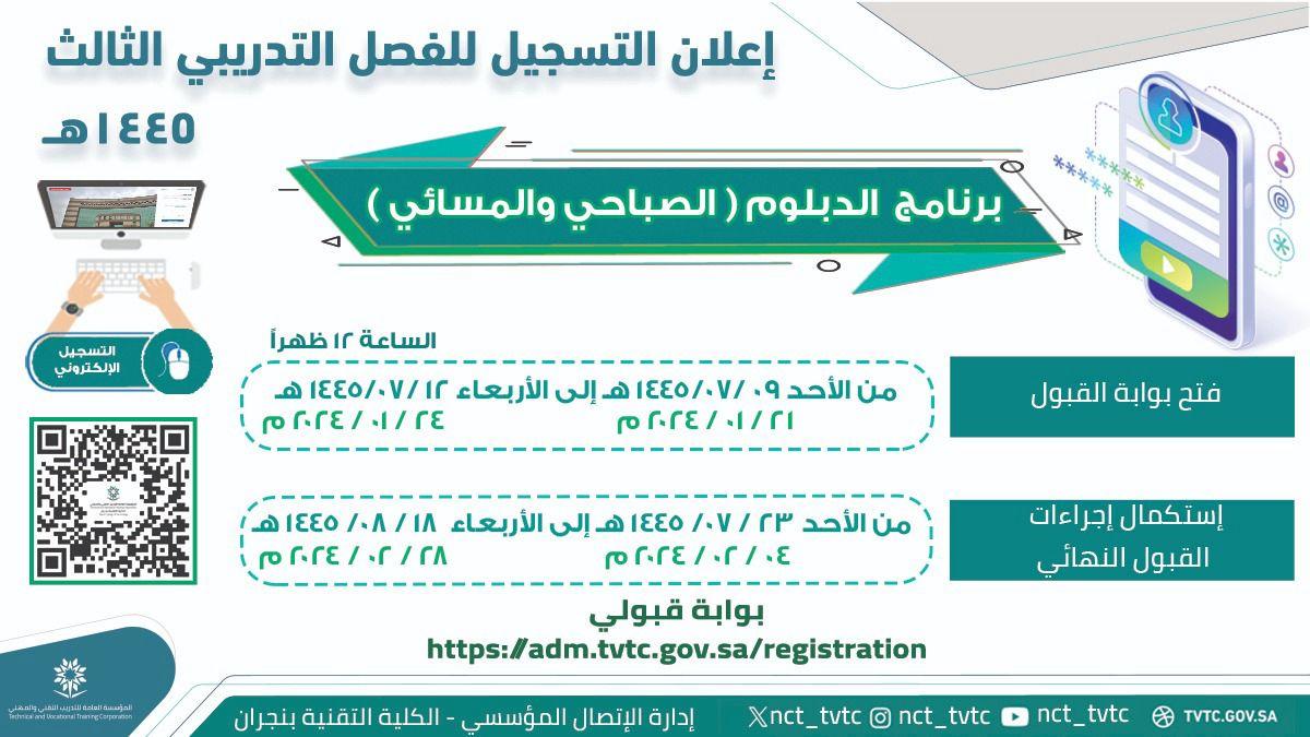 الكلية التقنية بنجران تعلن عن موعد القبول لبرنامج الدبلوم الصباحي والمسائي