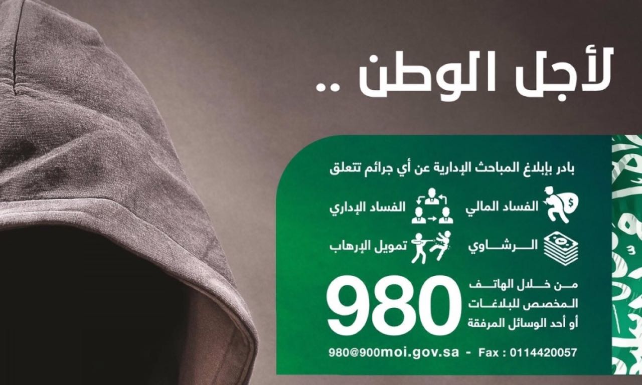 ودعت رئاسة أمن الدولة كل المواطنين والمقيمين إلى الإبلاغ عن حالات الفساد المالي والإداري المختلفة على الرقم 980 لتحقيق الهدف الرئيسي للمباحث الإدارية المتمثل في المساهمة في حفظ أمن الدولة الداخلي من خلال مكافحة جريمة الرشوة والجرائم الملحقة بها وجرائم تمويل الإرهاب، وحددت 4 حوافز للمبلغين عن الفساد أبرزها المكافأة المالية.