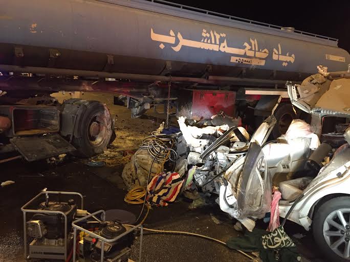 وإنتقلت على الفور الفرق الإسعافية المتكاملة الى الموقع، وإتضح لها وجود رجل وزوجته محتجزيْن داخل السيارة؛ فيما نَقل مواطن طفلين إلى المستشفى قبل وصول الفِرق الى الموقع ، وحالتهما كانت متوسطة.