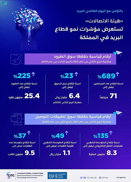 استعرضت هيئة الاتصالات وتقنية المعلومات مؤشرات نمو قطاع البريد في المملكة بالتزامن مع اليوم العالمي للبريد.