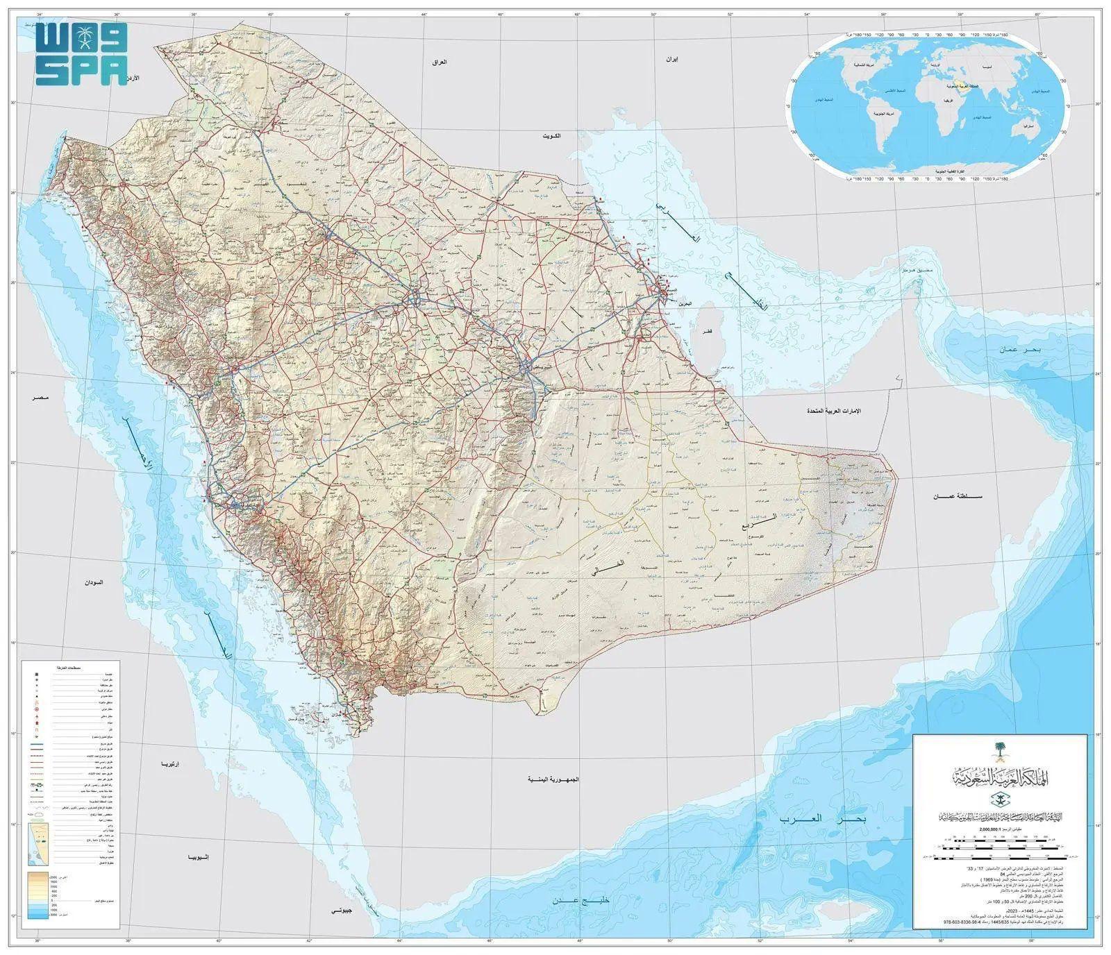 أعلنت الهيئة العامة للمساحة والمعلومات الجيومكانية بوصفها الجهة الوطنية المسؤولة عن إنتاج الخارطة الرسمية للمملكة بالحدود الدولية المعتمدة وتزويدها لكافة الجهات الحكومية والقطاع الخاص والقطاع الأكاديمي والأفراد ووسائل الإعلام، وتتوفر الخارطة الرسمية باللغتين العربية والإنجليزية وبعدد من الصيغ الرقمية من خلال الموقع الإلكتروني للهيئة, حيث يمكن الحصول على خرائط رسمية للمملكة بمقاسات رسم مختلفة ولمختلف الأغراض من خلال الموقع الإلكتروني للهيئة http://www.geosa.gov.sa.