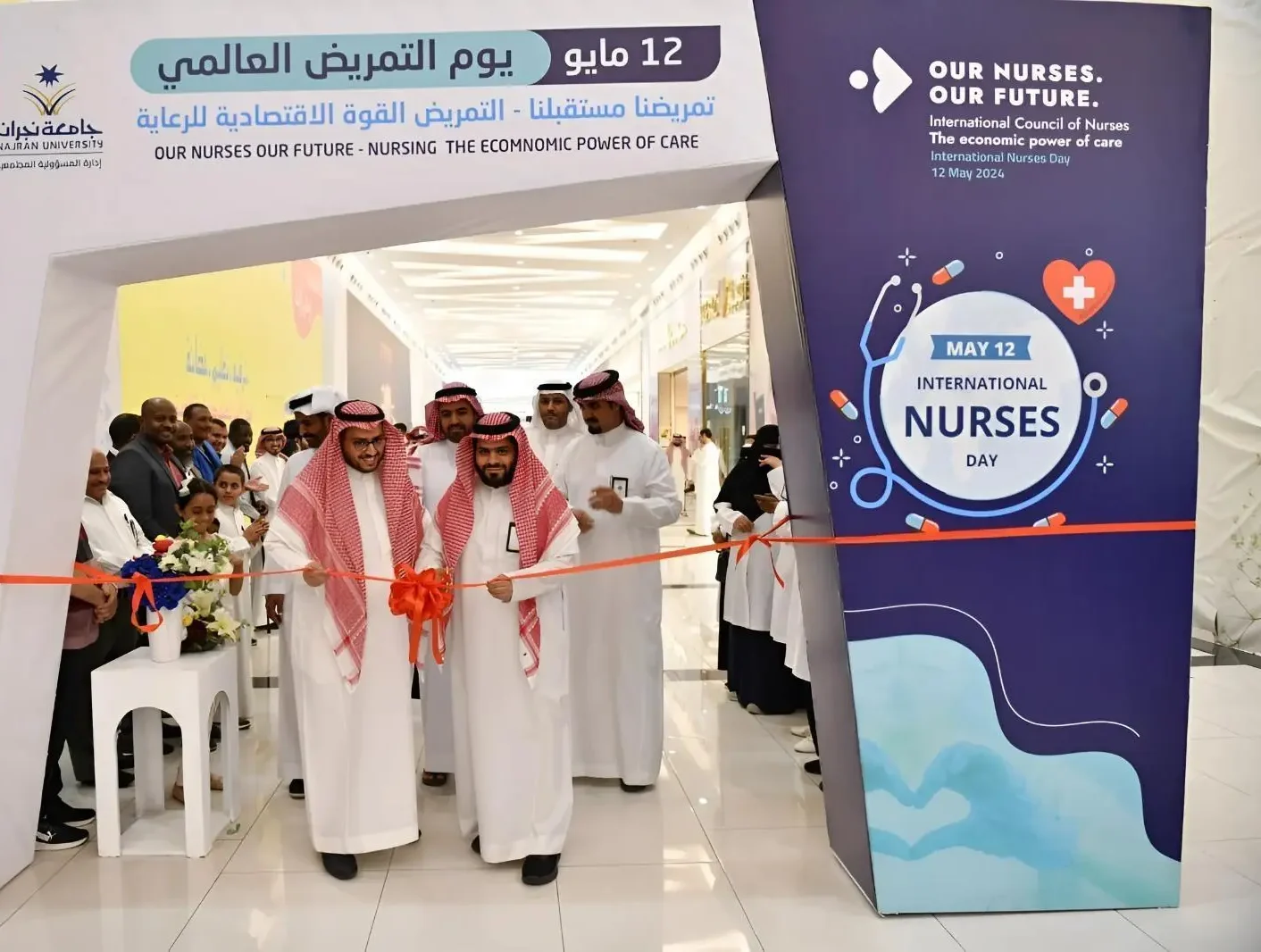 نظمت جامعة نجران ممثلةً في كلية التمريض اليوم، معرضاً بمناسبة اليوم العالمي للتمريض بعنوان “تمريضنا مستقبلنا”، بحضور وكيل الجامعة للشؤون التعليمية الدكتور بندر الشهري، وذلك بمجمع نجران بارك بمدينة نجران.