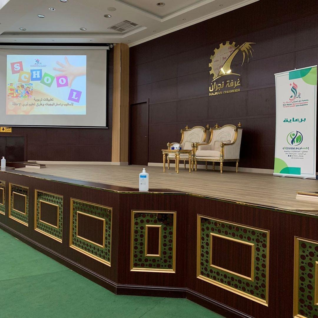 نفذت جمعية نور نجران النسائية لذوي الاحتياجات الخاصة في نجران بالتعاون مع الغرفة التجارية ومركز إكستريم مساء يومين الأحد والثلاثاء ختام للورشة التدريبية والتى استمرت لمدة يومين بعنوان ( تطبيقات تربوية لأساليب واستراتجيات وطرق تعليم ذوي الإعاقة ) وذلك في قاعة الحمرور بالغرفة التجارية .