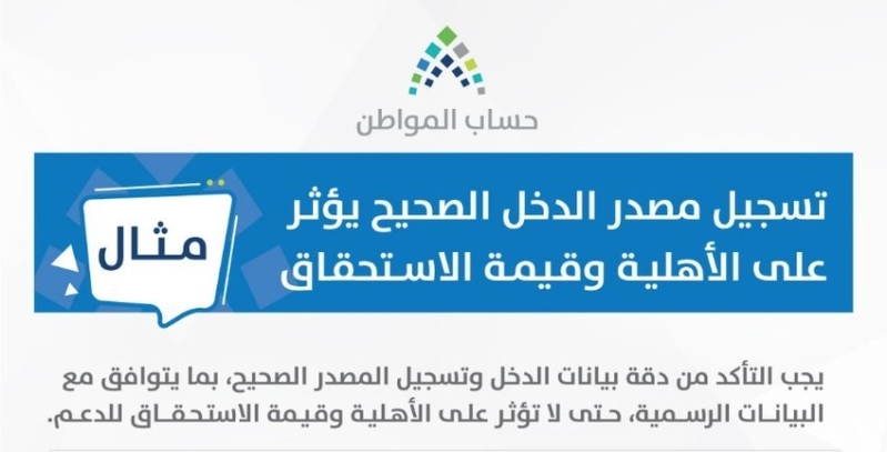 شدد حساب المواطن على ضرورة تطابق بيانات الدخل المفصح عنها مع المسجلة لدى الجهات الرسمية داعياً إلى تحديث الدخل وفق المستجدات التي تطرأ عليه.