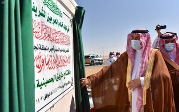 جاء ذلك خلال افتتاح سموه اليوم طريق الحصينية – يدمة،بطول (2.62) كيلو متر، بتكلفة إجمالية بلغت 85 مليون ريال.