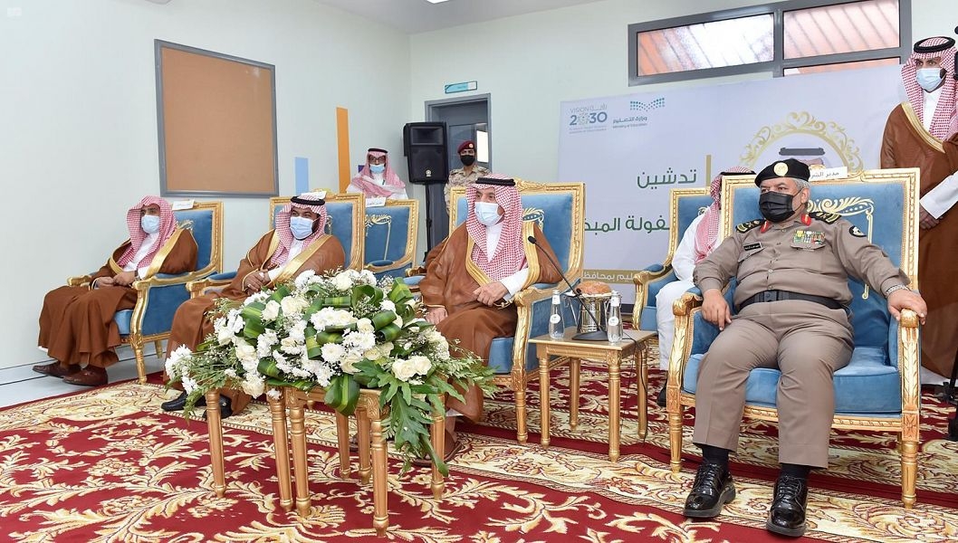 وفور وصول سموه مدرسة يدمة للطفولة المبكرة في المحافظة أزاح الستار عن اللوحة التذكارية ، بحضور محافظ يدمة موفق بن عبدالهادي العنزي.