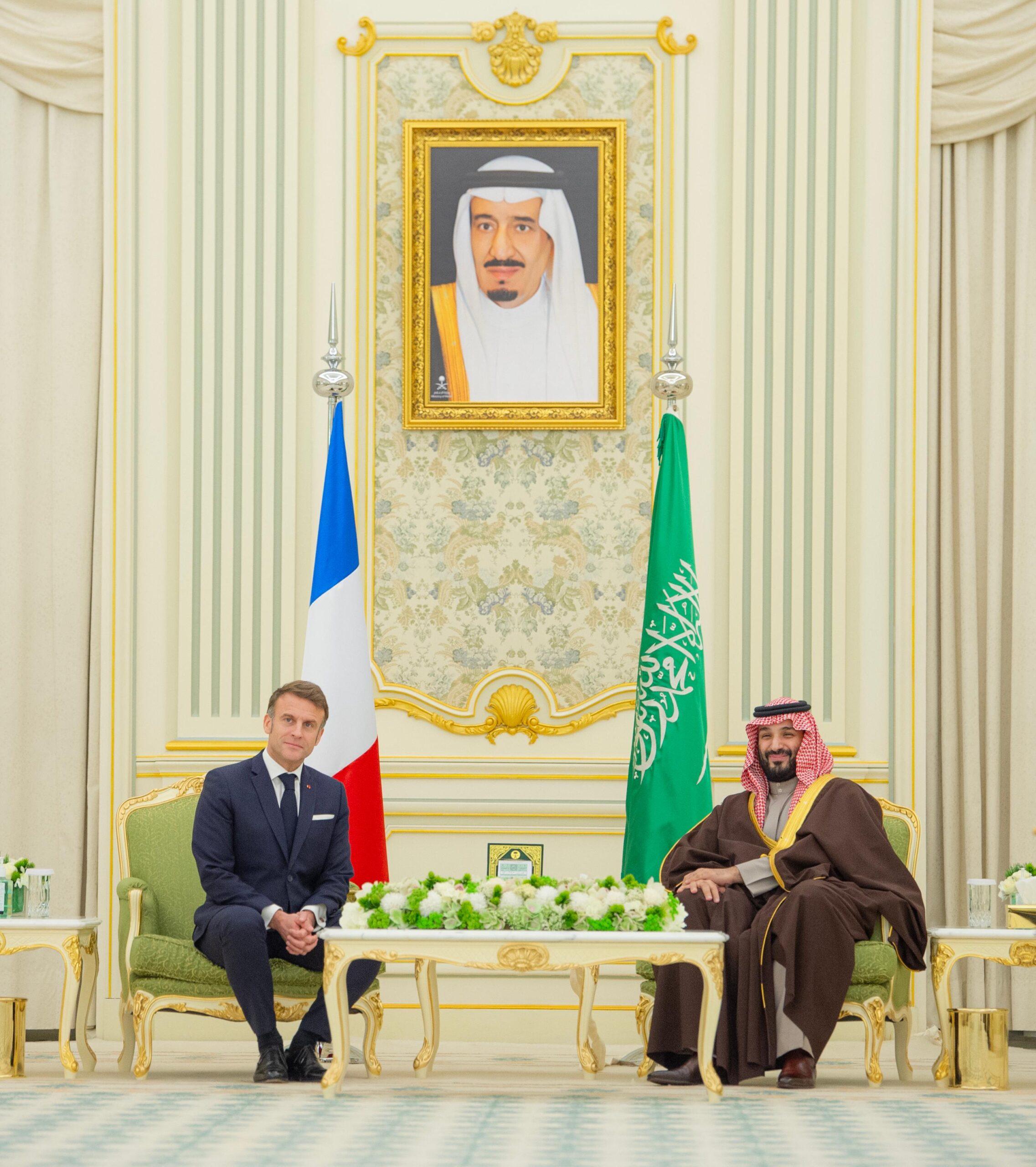 وعقد سمو ولي العهد وفخامة الرئيس الفرنسي لقاءً موسعاً وثنائياً.