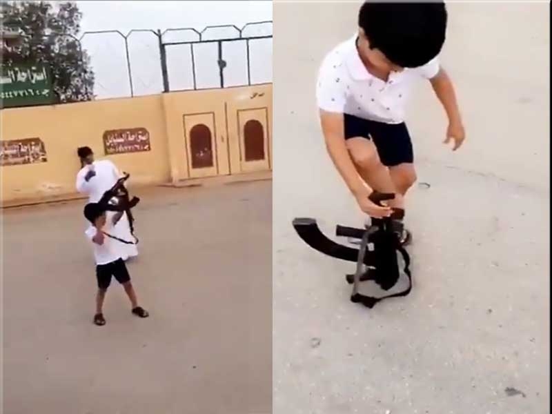 أظهر مقطع فيديو متداول، طفل يتلاعب بسلاح ناري، ويطلق أعيرة نارية في الهواء بشكل عشوائي.