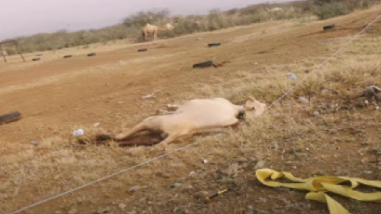 وظهر في الفيديو الناقة وهي ملقاة على الأرض وتقوم بحركات غريبة بعدد تلامسها مع سلك الكهرباء، الذي سقط من أحد الأعمدة الخاصة بالضغط العالي.