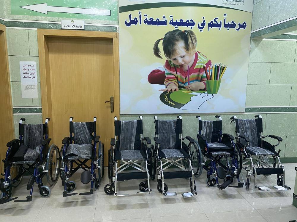 قدمت جمعية شمعة أمل لذوي الاحتياجات الخاصة عدد 41 كرسي إعاقة لفئة الإعاقة الحركية من عمر 5 إلى 25 سنة للمستفيدين من كلا الجنسين ضمن مبادرة «وطن العطاء» التي قدمها مجلس الجمعيات الأهلية بنجران لمساعدة الأسر المحتاجة.
