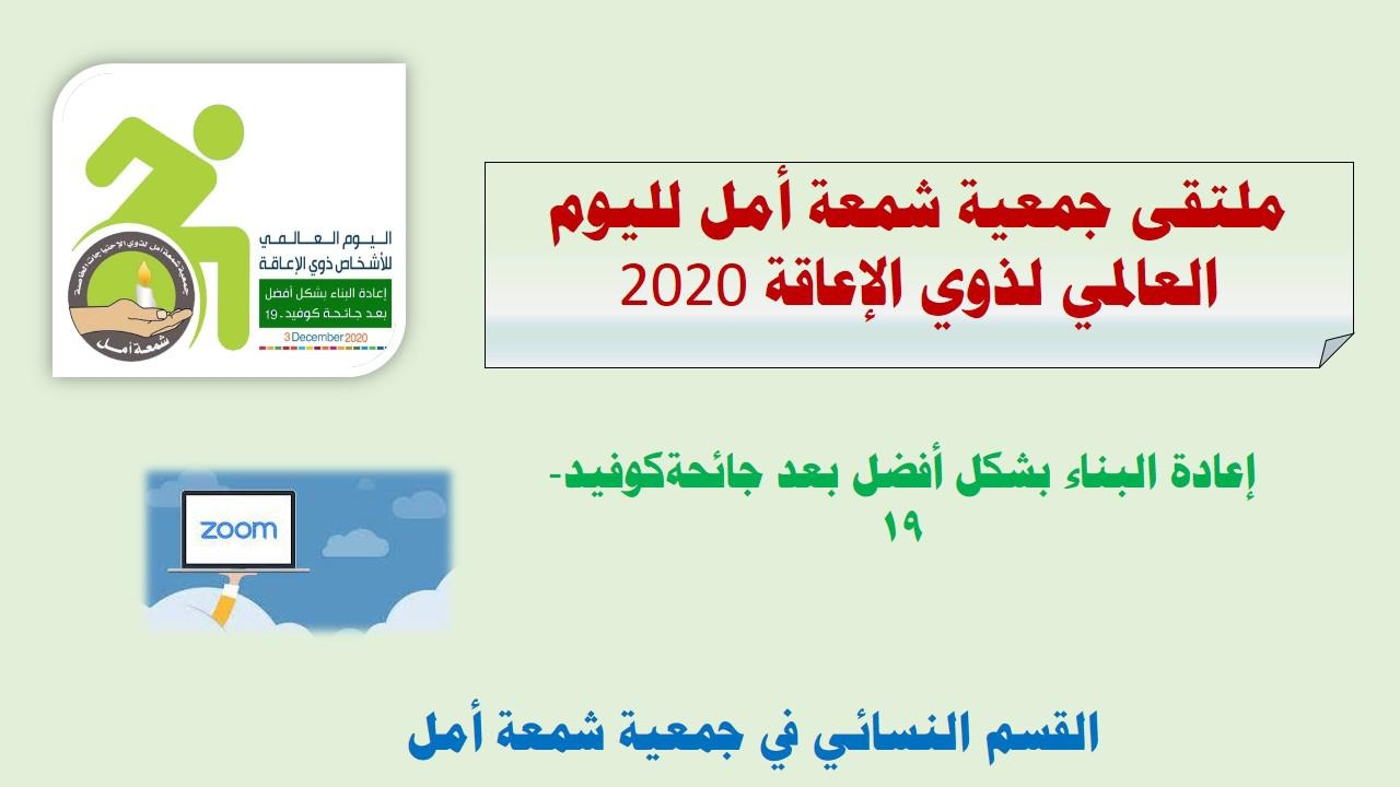 عبر لقاء الزووم.. جمعية شمعة امل تحتفي باليوم العالمي للإعاقة ٢٠٢٠
