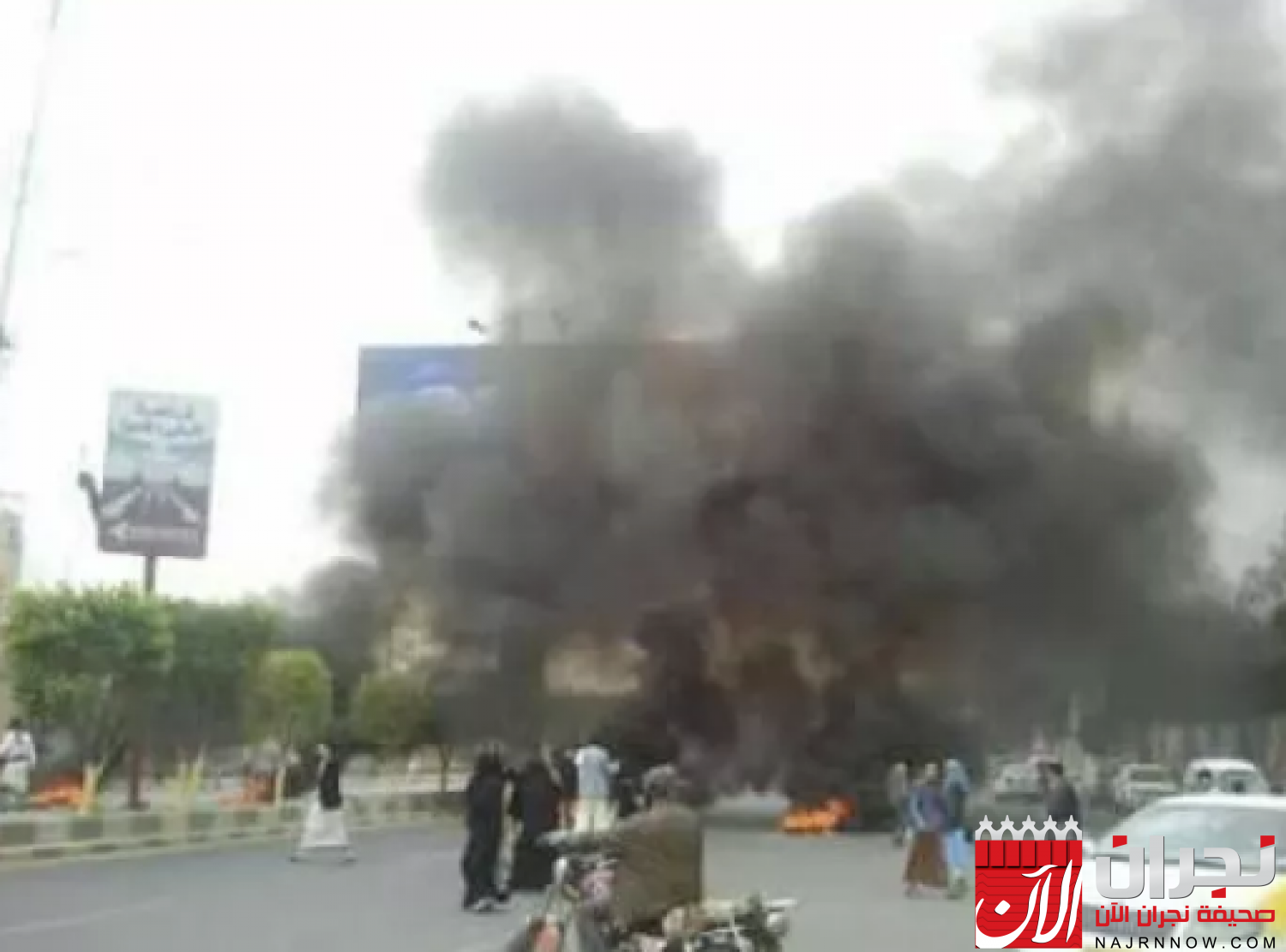 وأحرق المتظاهرون إطارات السيارات تنديداً بالكوارث الإِنْسَانية والمعاناة المعيشية الناتجة عن الانْقِلَاب، وسط انْتِشَار مكثف لمسلحي مِيلِيشْيَا الحوثي الذين قمعوا المتظاهرين واعتقلوا عدداً منهم فِي محاولة حوثية لإثْنَاء سكان العاصمة صنعاء عن التظاهر والتعبير عن رفضهم لسياسة الحصار والتجويع التي تنهجها مِيلِيشْيَا الحوثي الإيرانية.