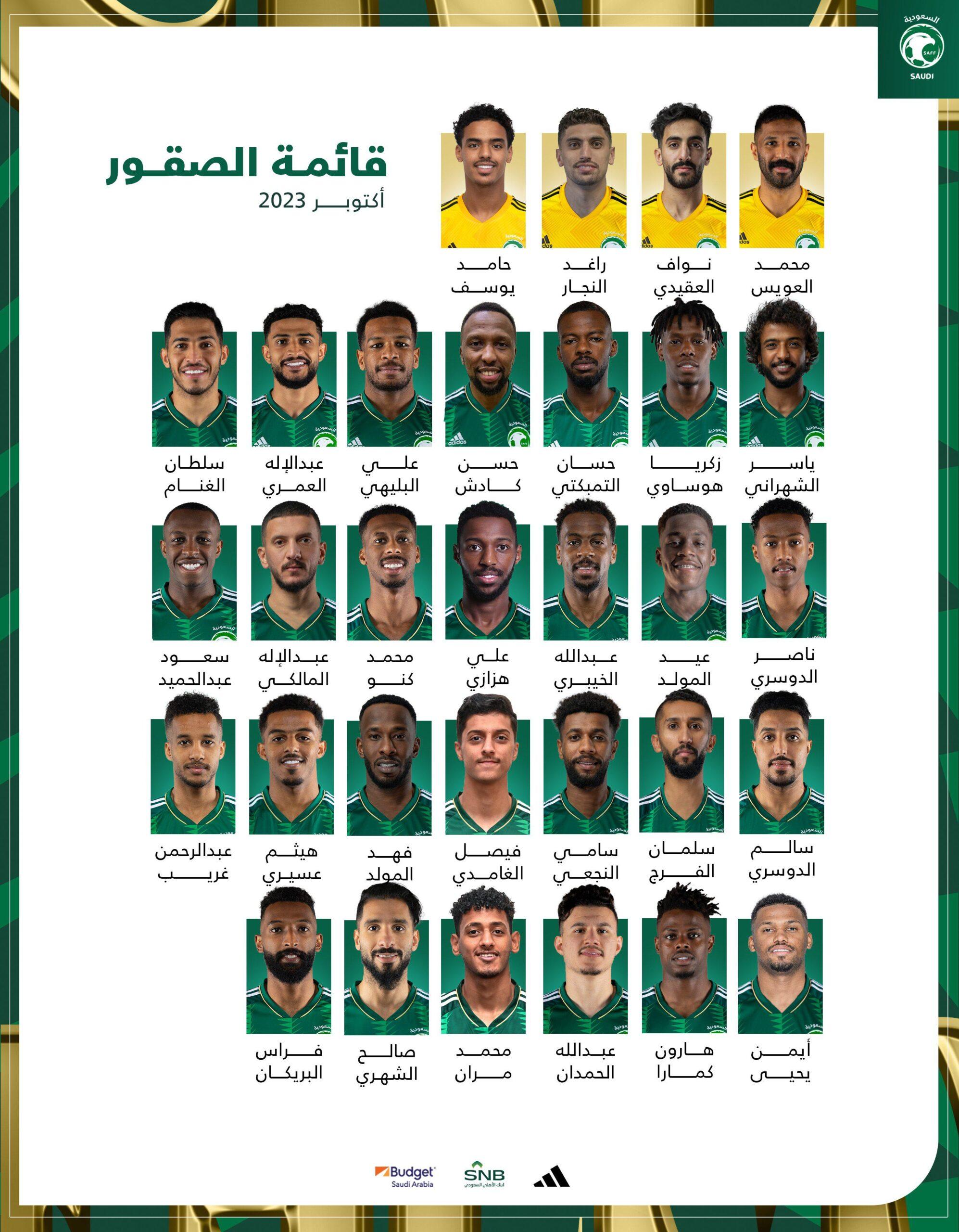 أعلنت إدارة المنتخب الوطني قائمة المدير الفني روبرتو مانشيني للمشاركة في المعسكر الإعدادي الذي سينطلق بعد يوم غدٍ الأحد في مدينة لاقوس البرتغالية، خلال فترة أيام الفيفا الدولية لشهر أكتوبر 2023، وذلك ضمن المرحلة الثالثة من البرنامج الإعدادي استعدادًا لمنافسات كأس آسيا 2023 التي ستقام في دولة قطر في شهر يناير المقبل.