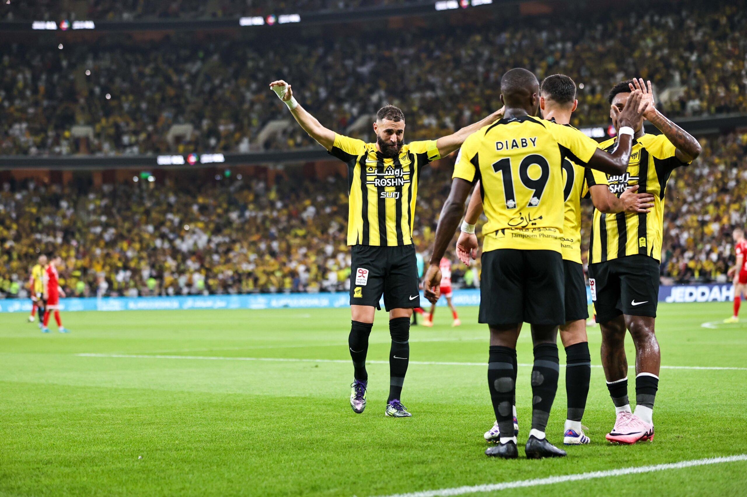 وسجل اللاعب كريم بنزيما الهدف الأول لفريق الاتحاد في الدقيقة 2 بعد تسديدة رائعة من خارج منطقة الجزاء لم يتمكن الحارس من التصدي لها.