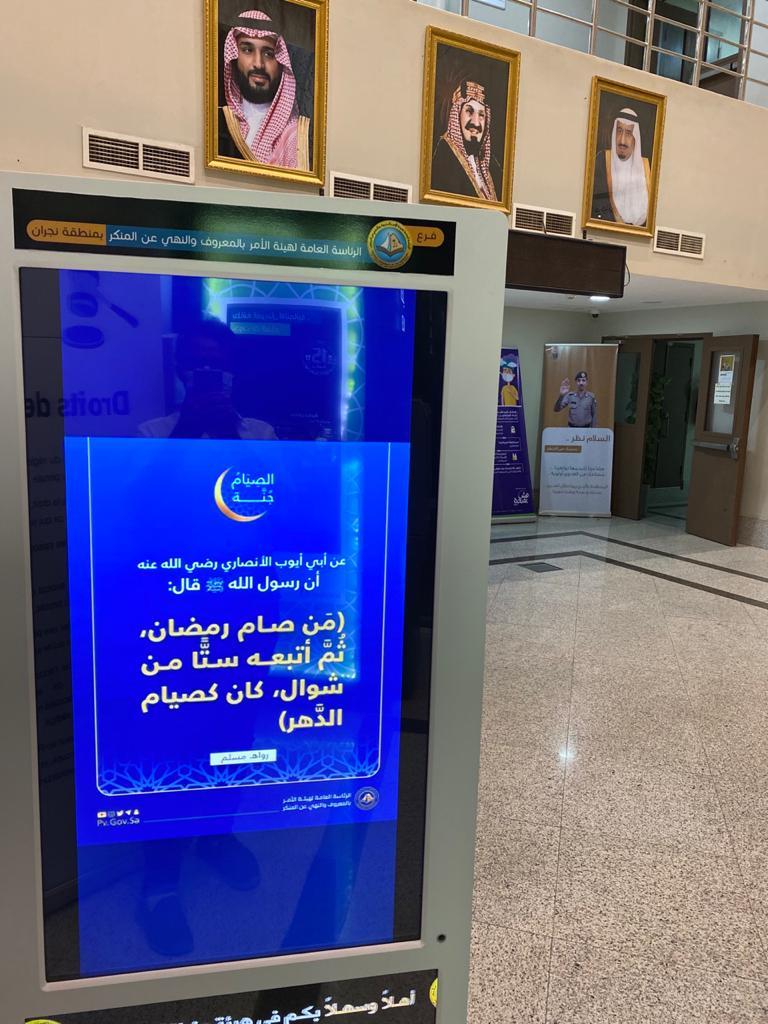 هيئة الأمر بالمعروف بمنطقة نجران تشارك بمحتوى توعوي على الشاشات الإلكترونية في المجمعات والمرافق