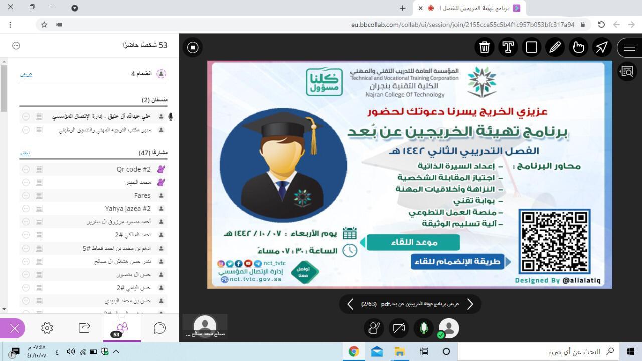 الكلية التقنية بنجران تنفذ برنامج تهيئة الخريجين لسوق العمل افتراضياً