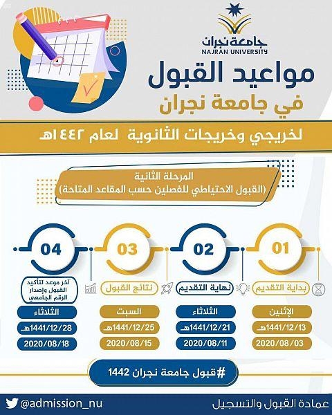 جامعة نجران تستقبل غدًا طلبات القبول الاحتياطي لخريجي وخريجات المرحلة الثانوية