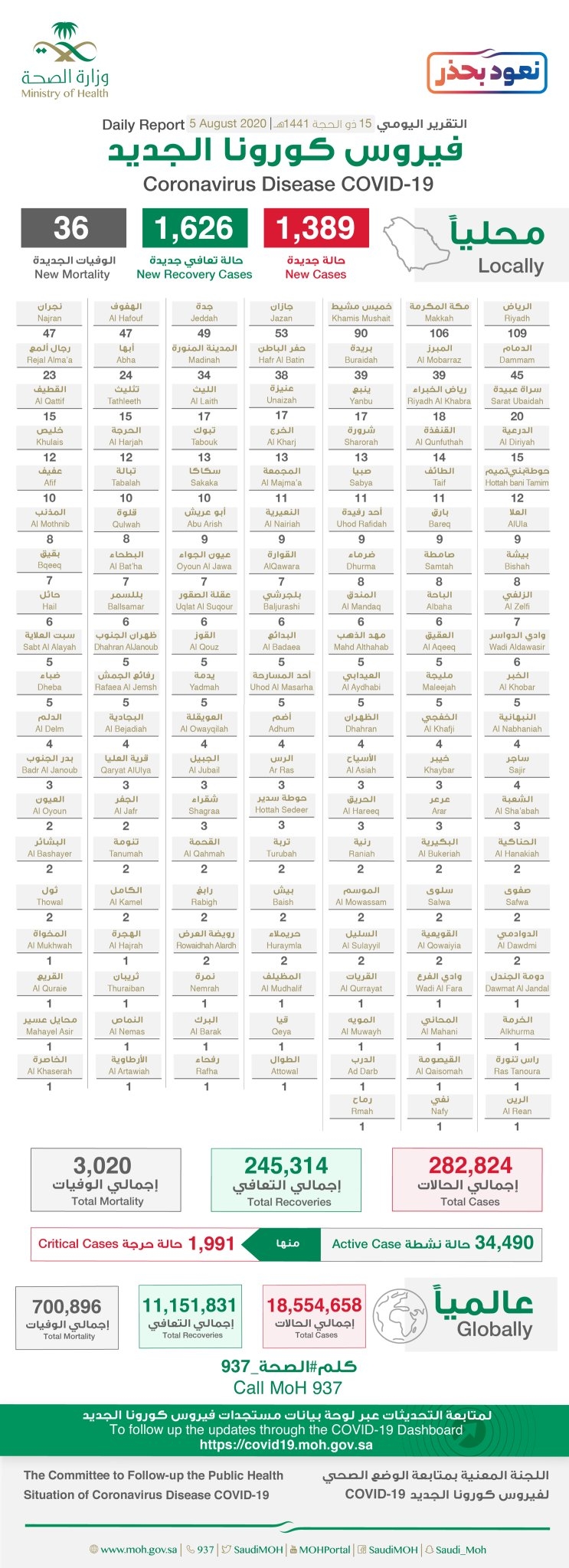 سجلت منطقة نجران 64 إصابه جديده و41 حالة تعافي.. الصحة تعلن تسجيل 1258 إصابة جديدة بفيروس كورونا