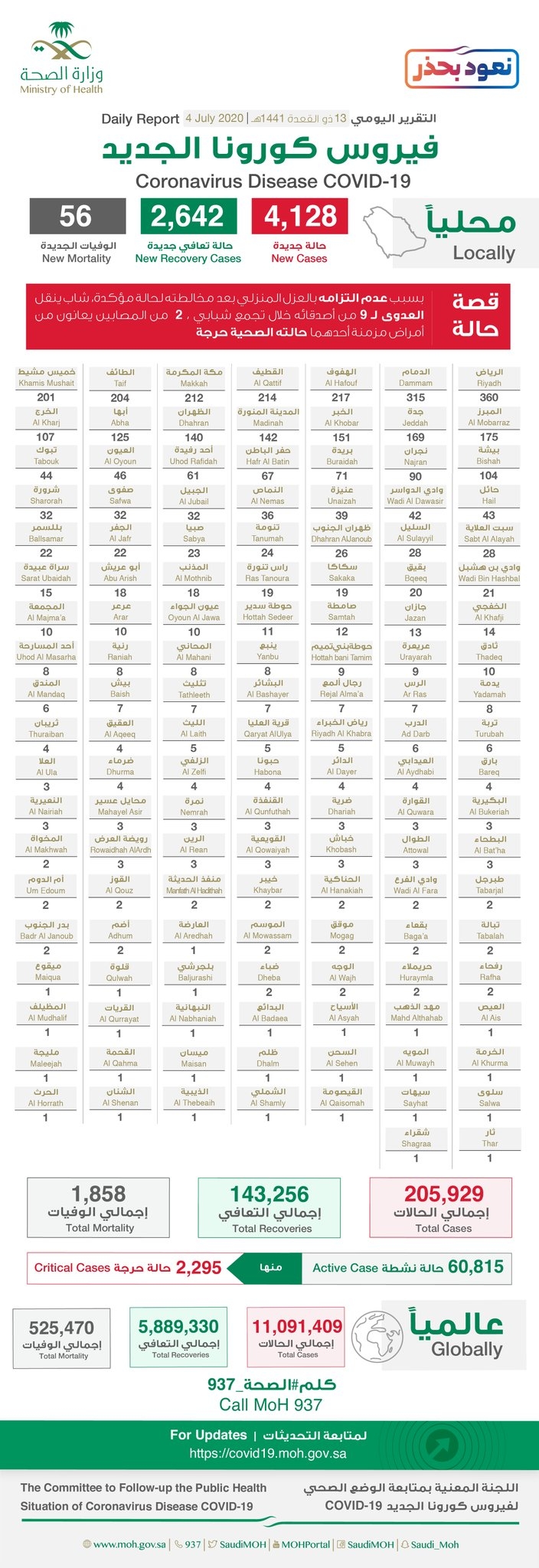 سجلت منطقة نجران 140 اصابة جديده .. وزارة الصحة تعلن عن تسجيل (4128) حالة إصابة جديدة بفيروس #كورونا الجديد بالمملكة