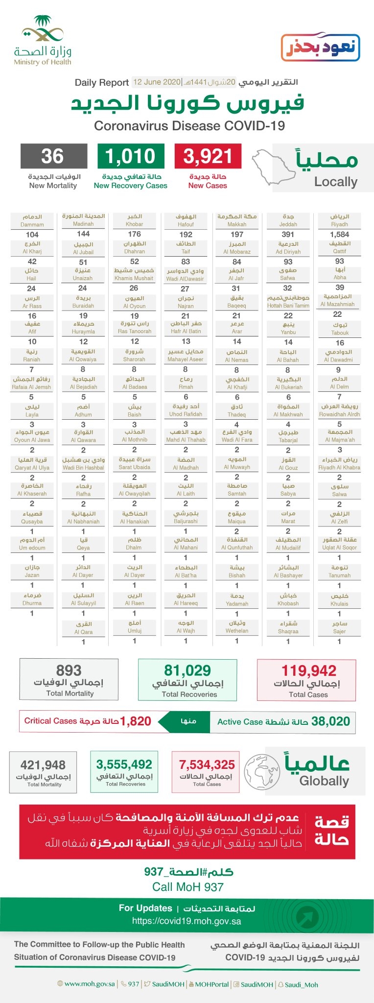 سجلت منطقة نجران 31 حاله جديدة .. وزارة الصحة :- تسجيل (3921 ) حالة إصابة جديدة بفيروس #كورونا