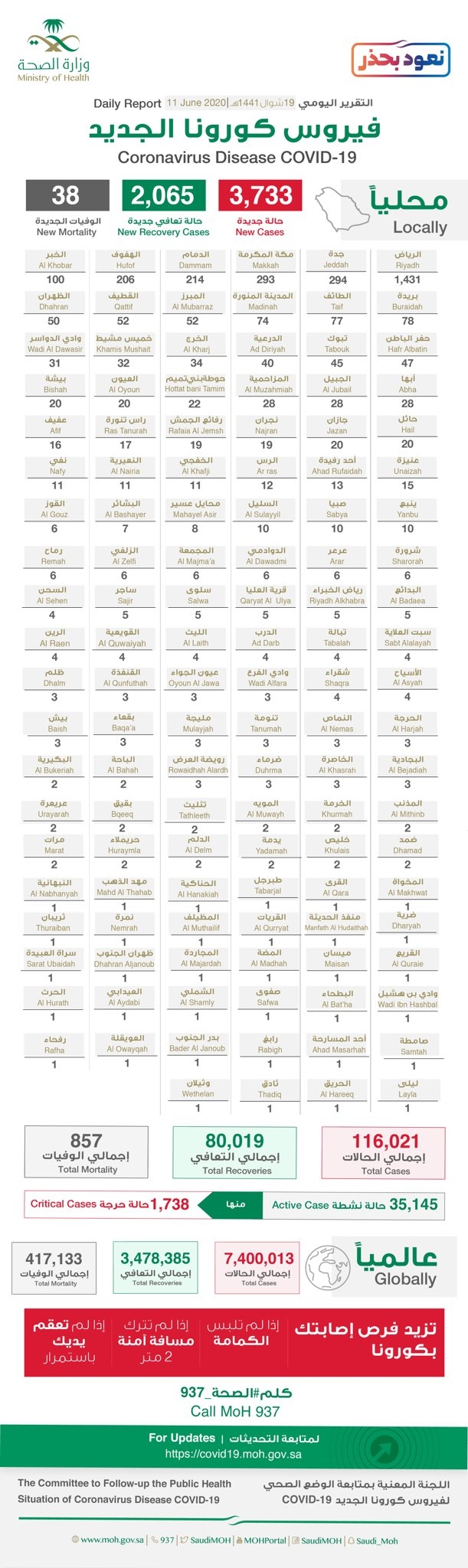 سجلت منطقة نجران 28 حاله جديدة .. وزارة الصحة :- تسجيل (3733) حالة إصابة جديدة بفيروس #كورونا
