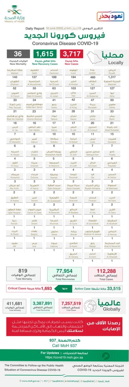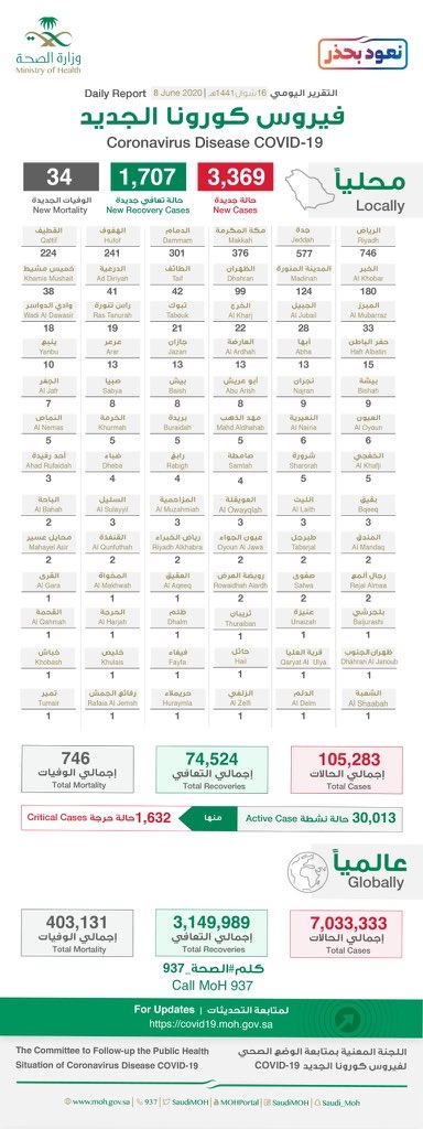 سجلت منطقة نجران 20 حاله جديدة .. #الصحة تعلن عن تسجيل (3717) حالة إصابة جديدة بفيروس #كورونا