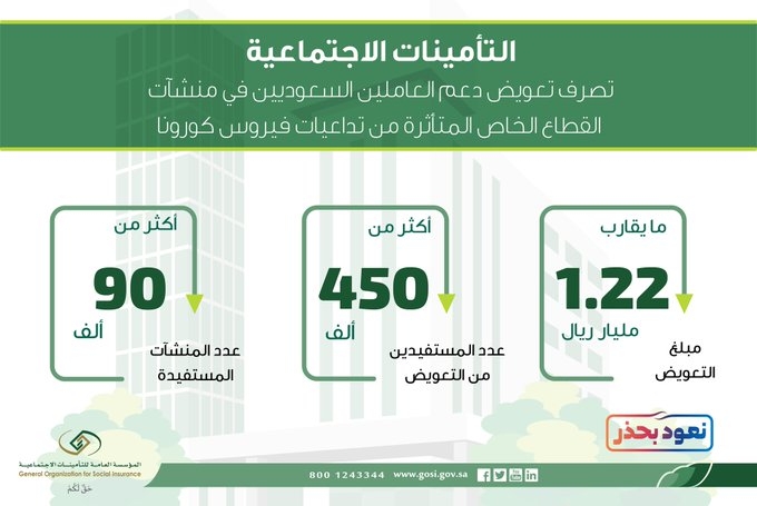 «التأمينات» تصرف تعويض دعم العاملين السعوديين في منشآت القطاع الخاص