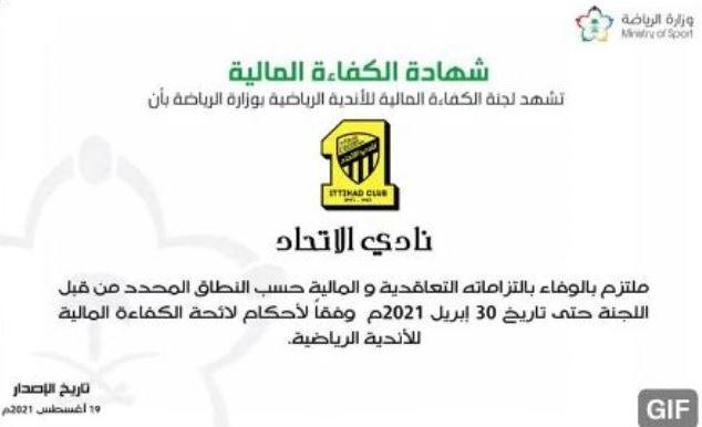 رسمياً.. الاتحاد يحصل على شهادة الكفاءة المالية