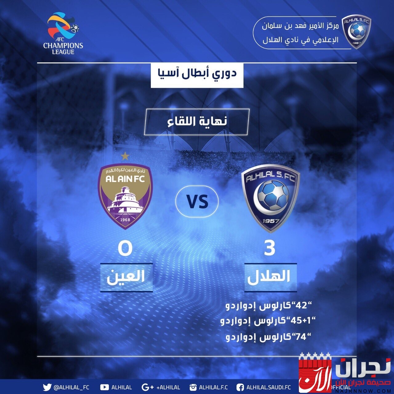 هاتريك إدواردو يقود الهلال الى نصف النهائي لدوري أبطال آسيا
