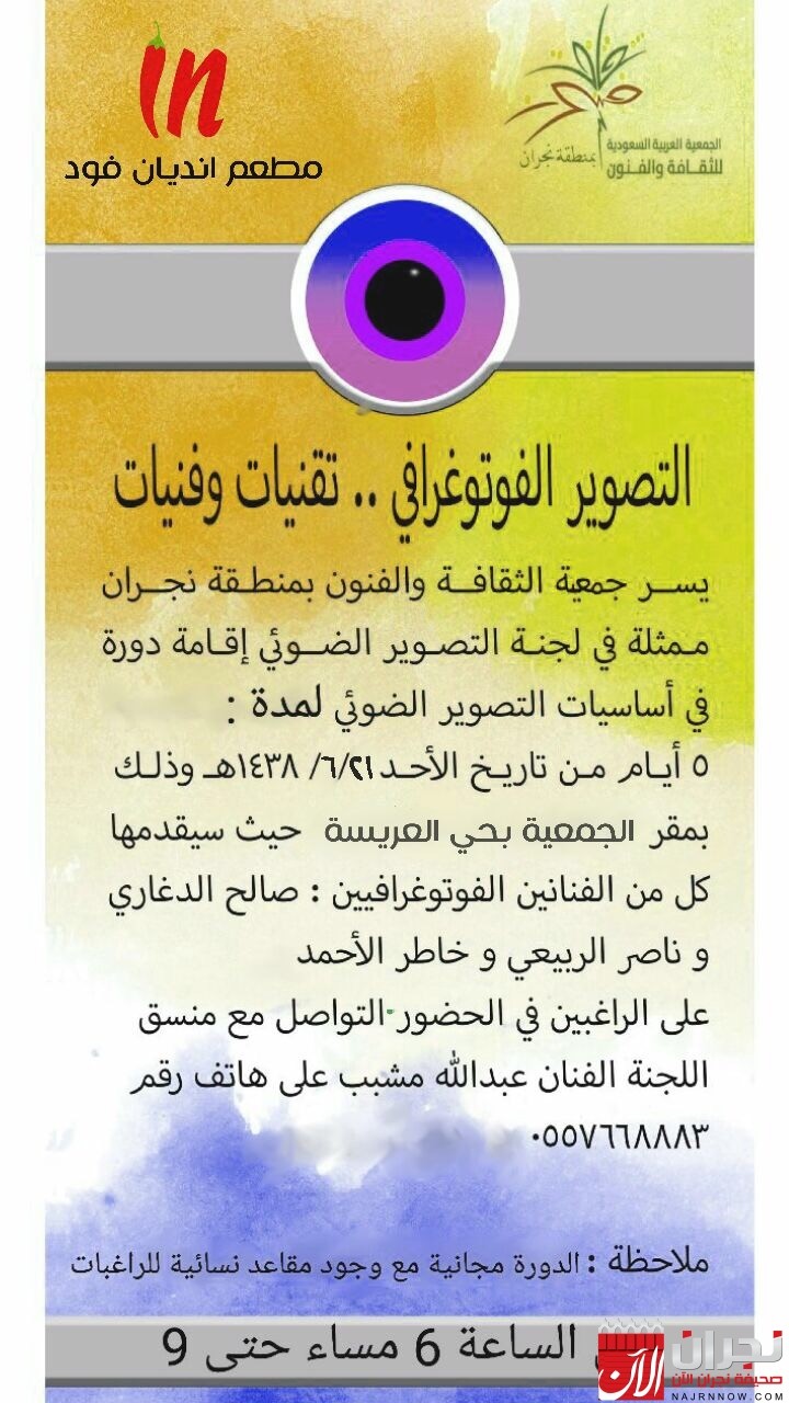 يسر جمعية الثقافة والفنون إطلاق دورة أساسيات التصوير الضوئي مجاناً لمدة 5 أيام من يوم الأحد بتاريخ 21 / 6…
