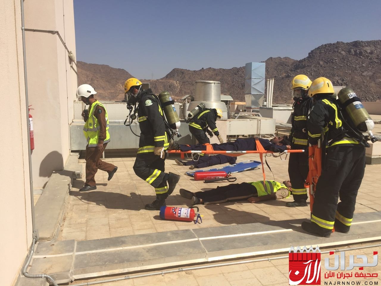 نجاح عمليات الإخلاء وإنقاذ المصابين في فرضية حريق مستشفى الولادة والأطفال بنجران