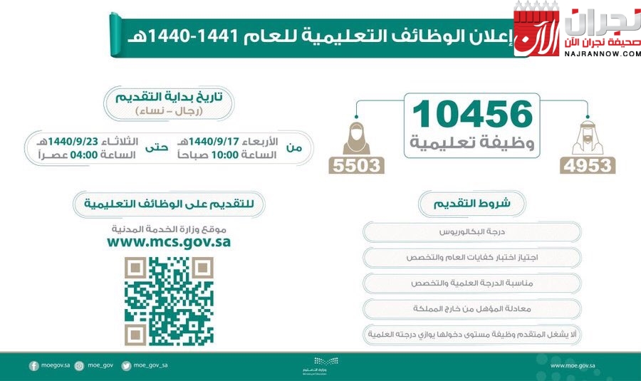أعلنت “وزارة التعليم”، اليوم الأحد، بالتنسيق مع وزارة الخدمة المدنية عن توفير 10456 وظيفة تعليمية شاغرة، وحاجتها إلى شغلها بمواطنين…