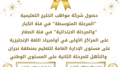 شركة مواهب الخليج التعليمية تحقق إنجازاً في أولمبياد اللغة الإنجليزية على مستوى الإدارة العامة للتعليم بمنطقة نجران