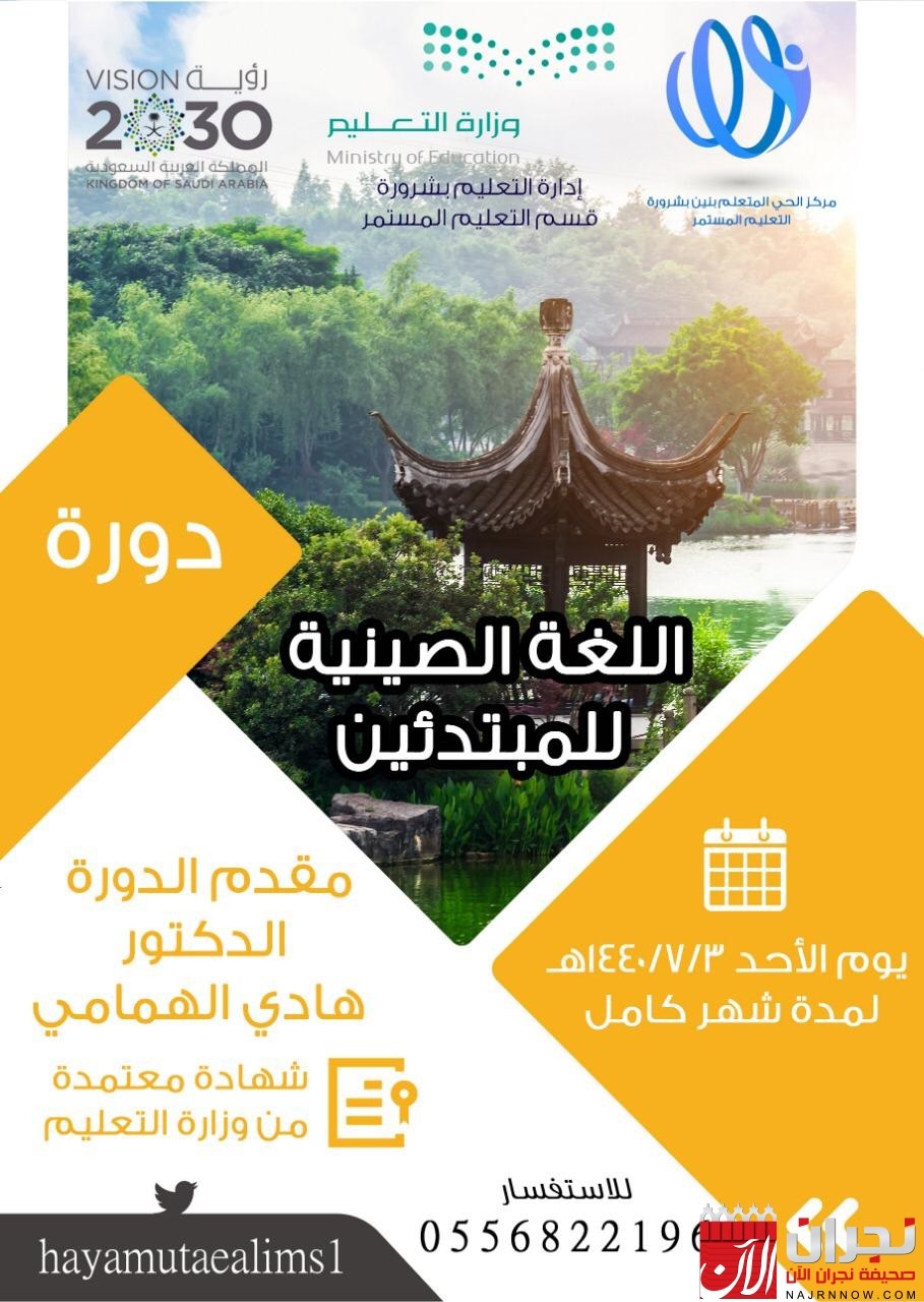 بحضور مدير تعليم شرورة الاستاذ فهد بن صالح عقالا انطلقت مساء اليوم دورة تعلم اللغة الصينية على مستوى محافظة شرورة…