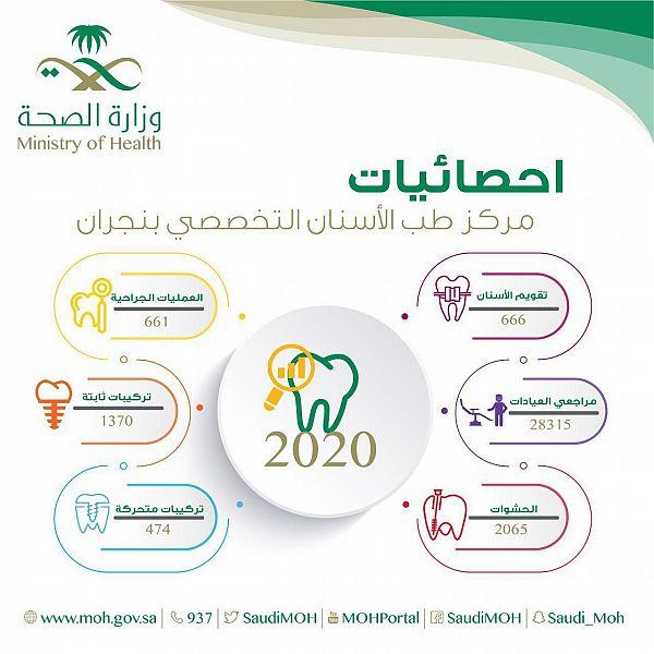 قدم مركزُ طب الأسنان التخصصي بنجران خِدْماتِه لـ 28315 مراجعاً خلال العام 2020م.