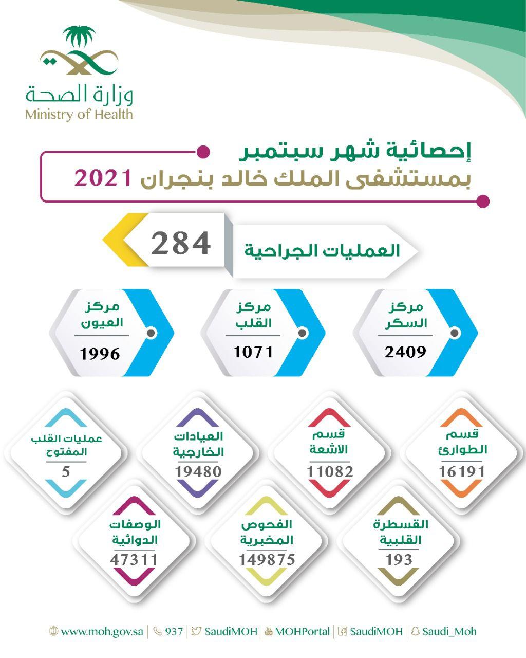 قدّمت المراكز المتخصصة في مستشفى الملك خالد بنجران، خدماتها لـ5476 مراجعاً, وذلك خلال شهر سبتمبر من العام 2021م.