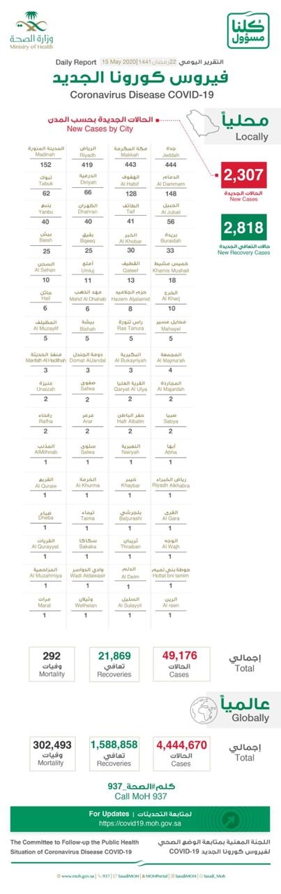 “الصحة”: تسجيل 2307 إصابة جديدة بـ«كورونا».. تعرف على توزيع الحالات حسب مدن المملكة