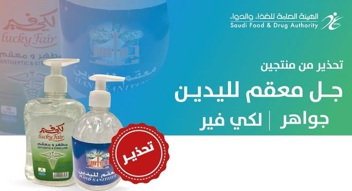 وأوضحت الهيئة أن الخمسة أنواع هي: جل جنفكس وجواهر وLucky Fair، وAreej Hand Gel Anti Bacterial وHibiclens Hand Sanitizer Gel، ودعت الجميع لعدم استخدامها وإعادتها إلى منفذ البيع الذي تم الشراء منه واسترجاع القيمة.