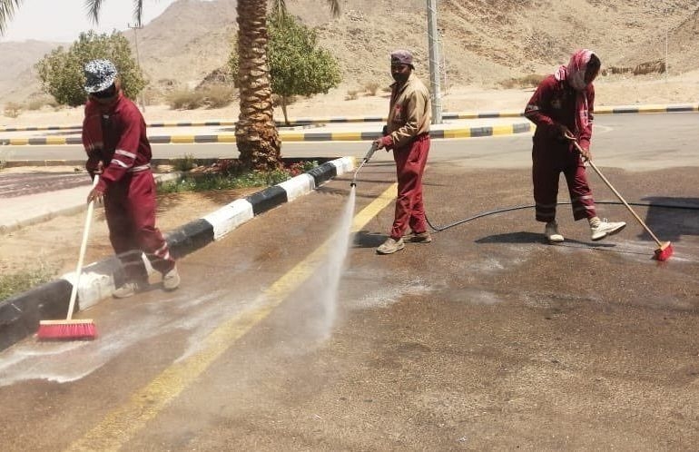 كما كثفت أمانة منطقة نجران والبلديات التابعة لها أعمالها في صيانة وتنظيف وتعقيم الشوارع الرئيسة والأماكن العامة للحد من انتشار فيروس كورونا، حيث جرى رش مزيج من المواد المطهرة والمنظفات على مقاعد الحدائق العامة واللافتات، في الشوارع وتطهير الأرضيات والأسطح يومياً، للتعزيز الجهود الوقائية والاحترازية للأمانة للحفاظ على سلامة المواطنين والمقيمين.